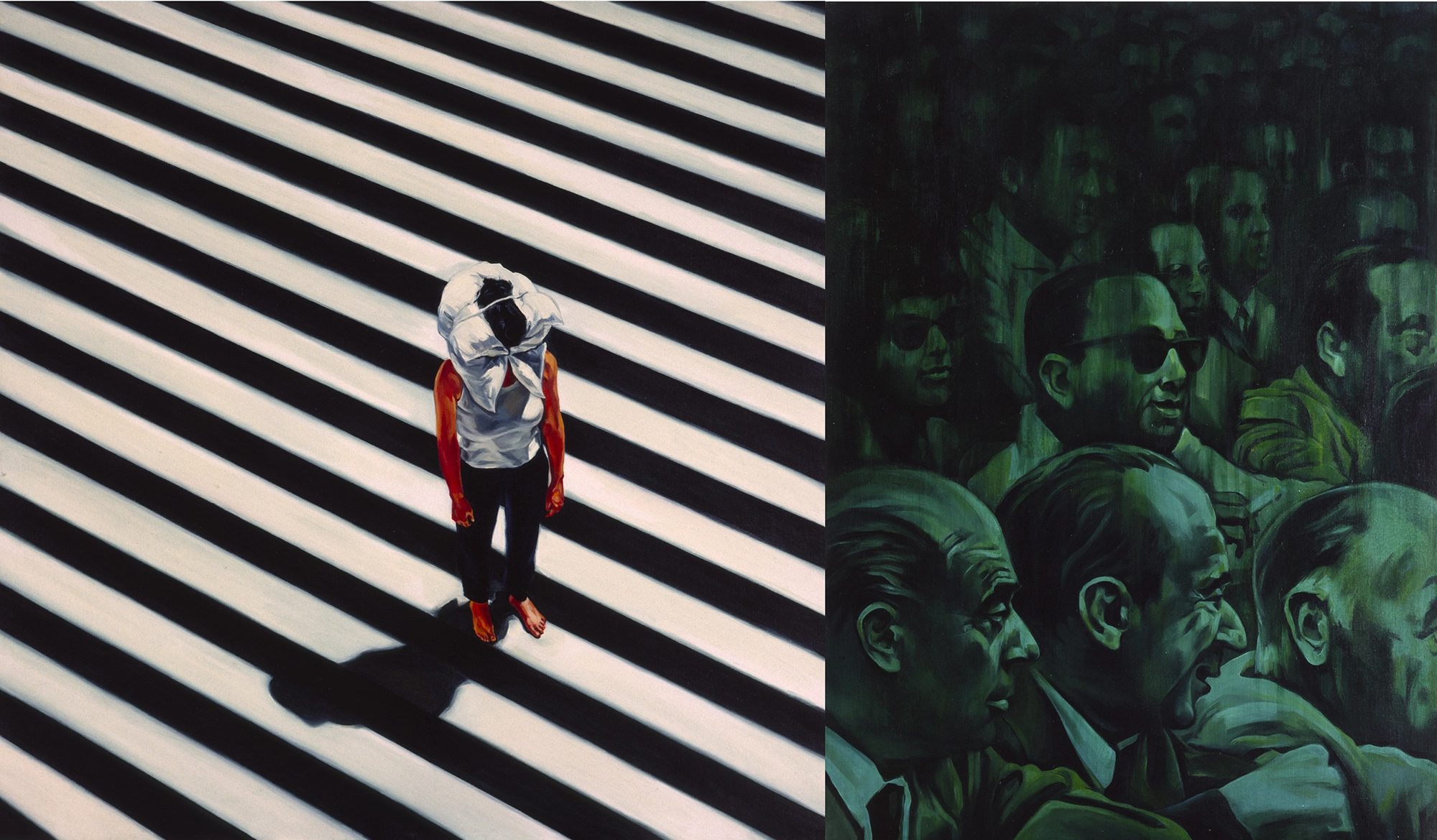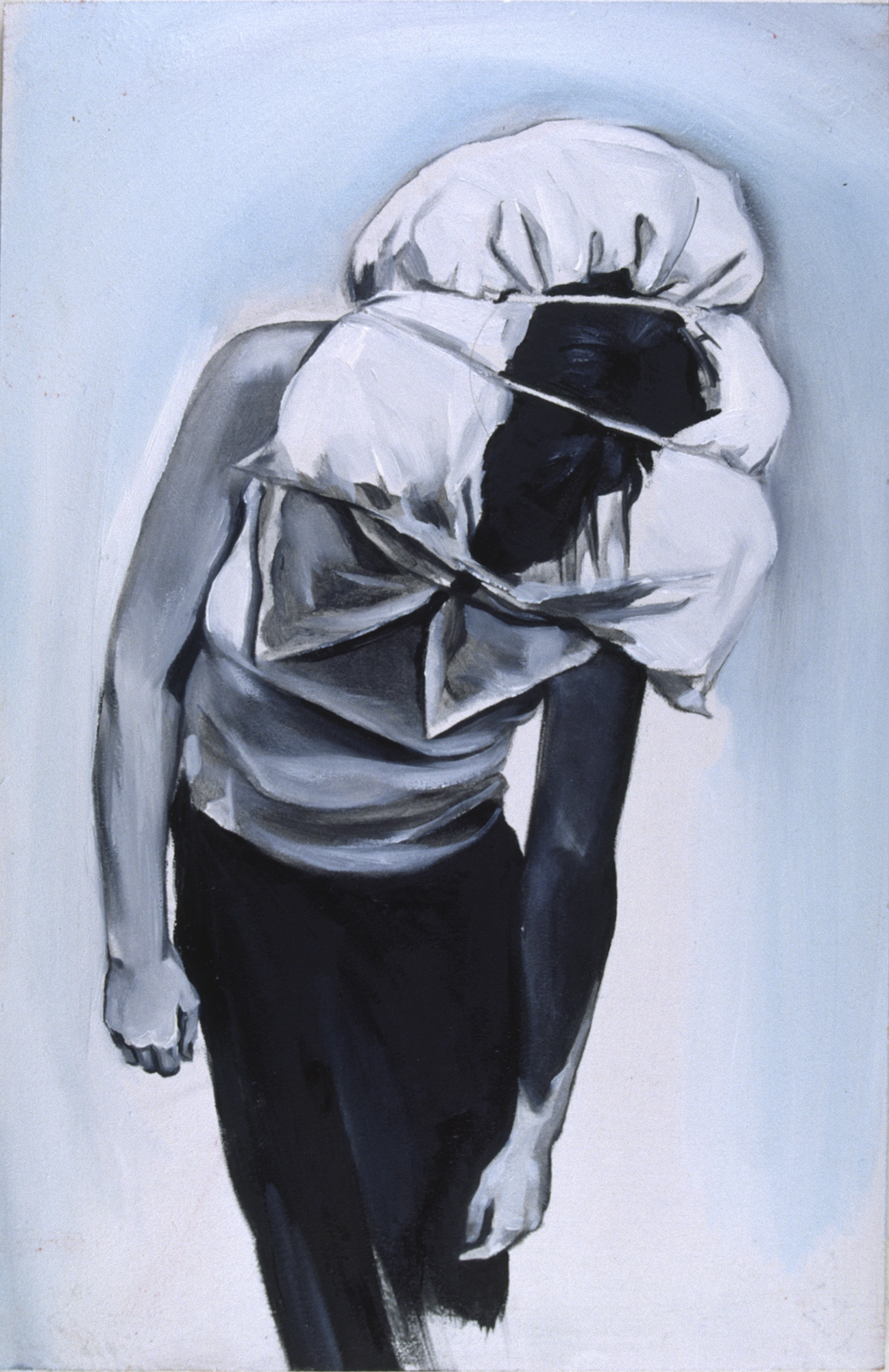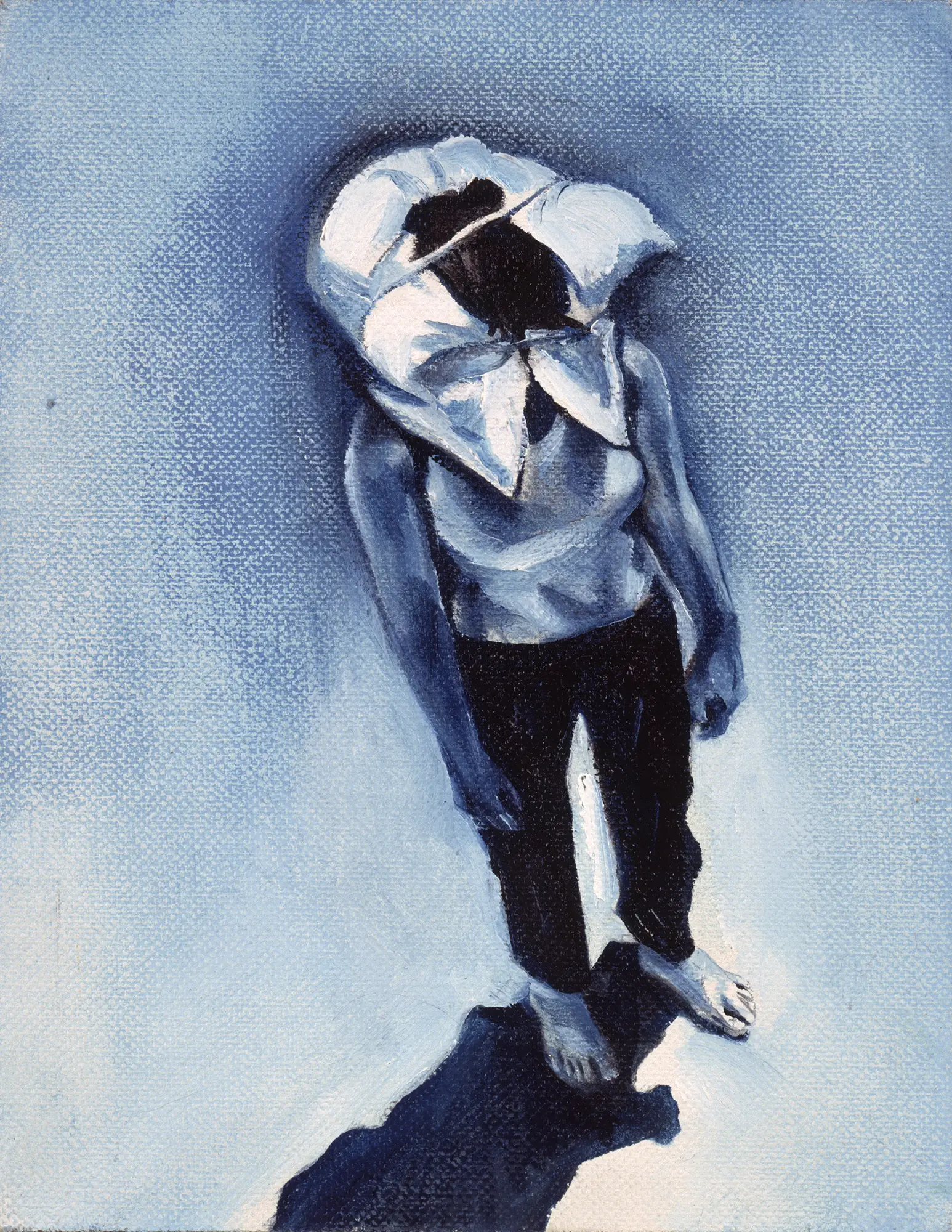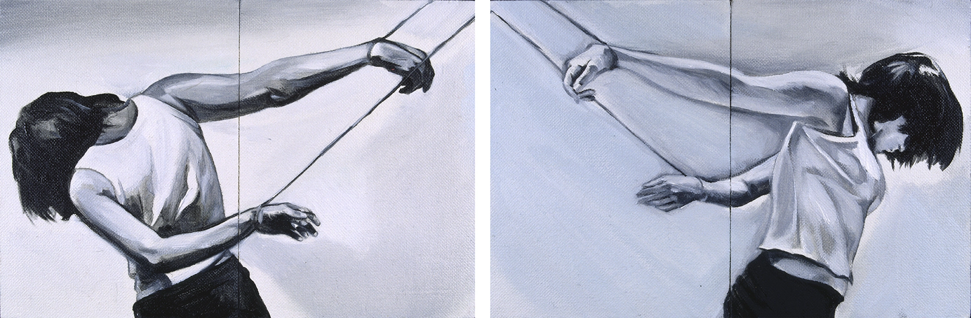 La confusión e inadaptación frente a los códigos sociales establecidos, el rechazo a la propia imagen, el aislamiento, la impotencia y el agotamiento ante la constante humillación, son solo algunos de los sentimientos compartidos. Las diferencias comienzan a observarse a partir de una serie de actos performativos donde determinados movimientos, ocasionados por cuerdas imaginarias, que tan pronto ciñen sus extremidades como le atan a la cabeza una pesada almohada, dislocan su cuerpo hasta hacerla caer rendida. Son metáforas que describen la presión de un exterior violento que produce una alteración cognitiva cuando parece imposible desafiarlo; y solo quitándose la almohada de la cabeza podrá salvar su vida.