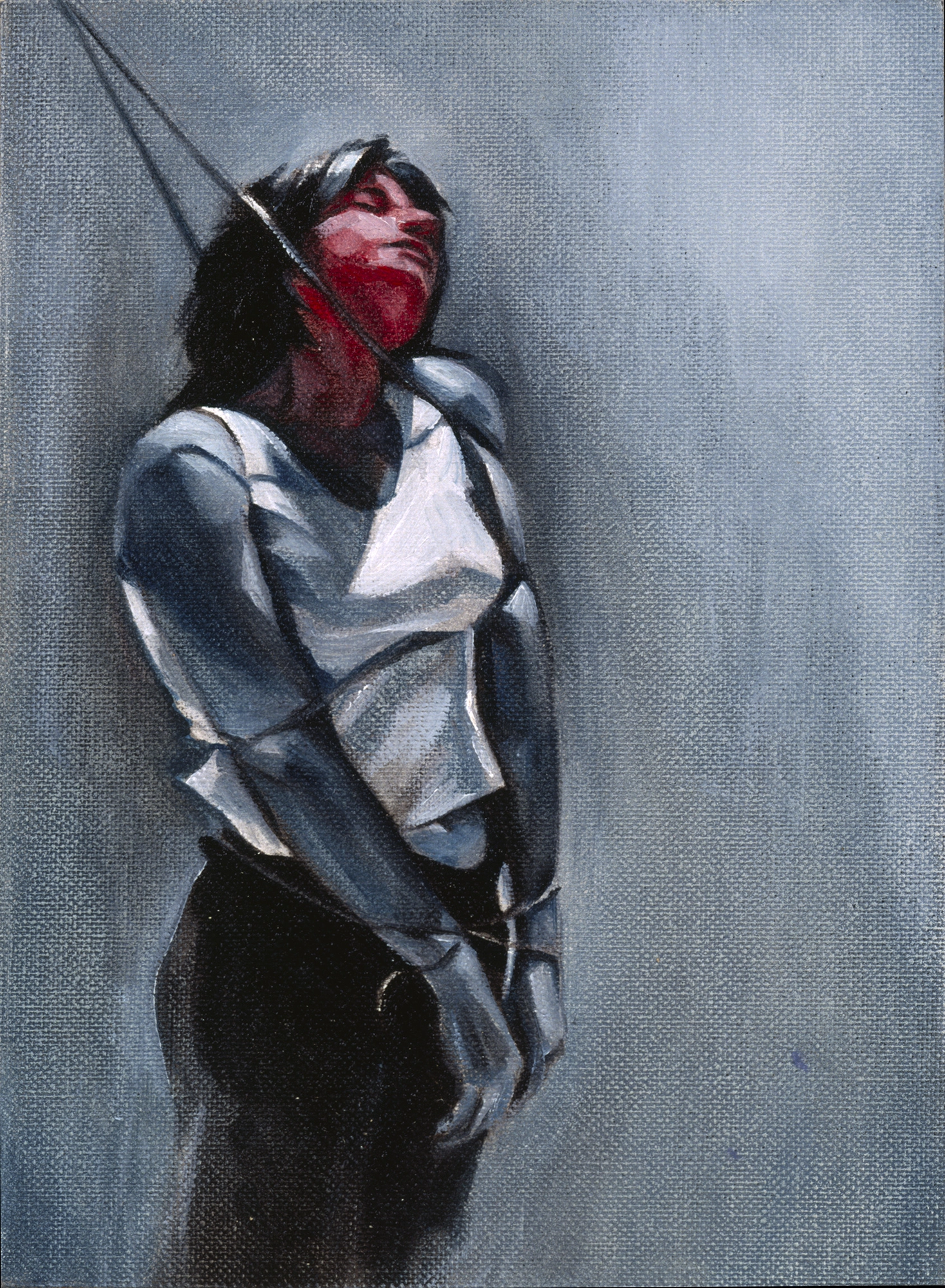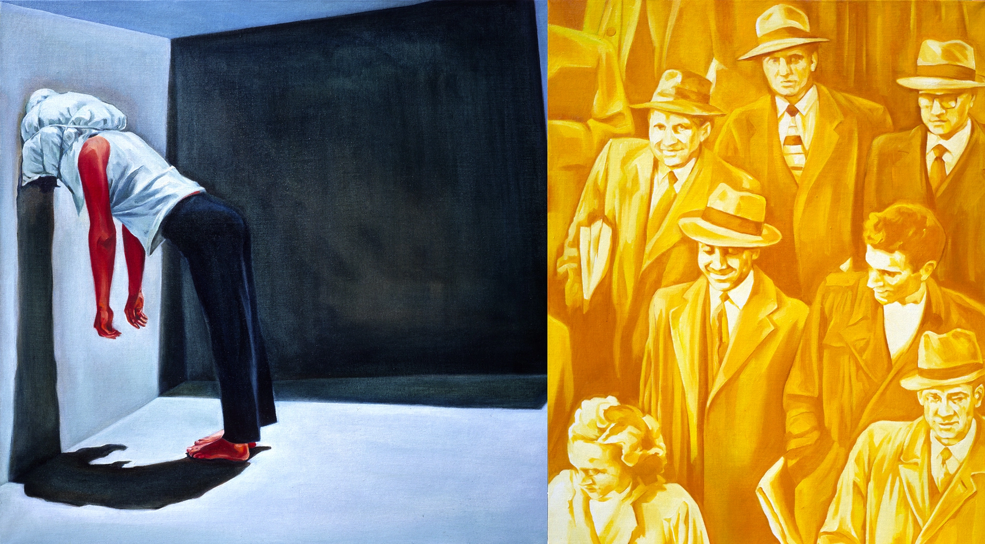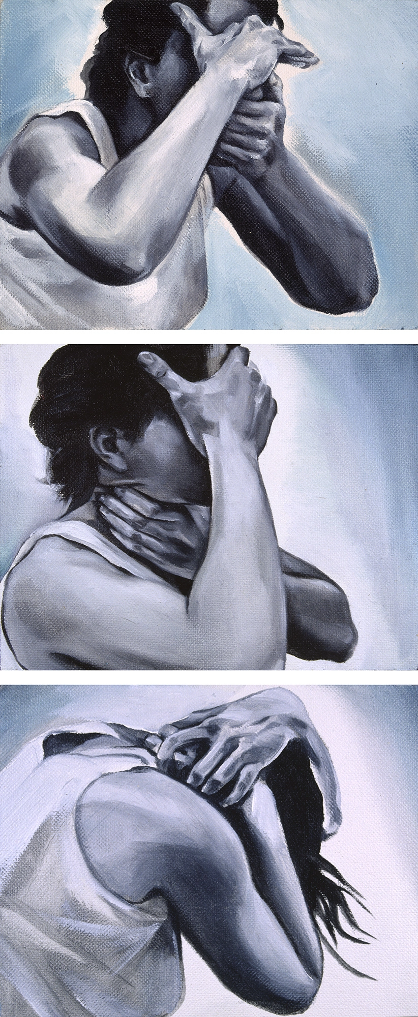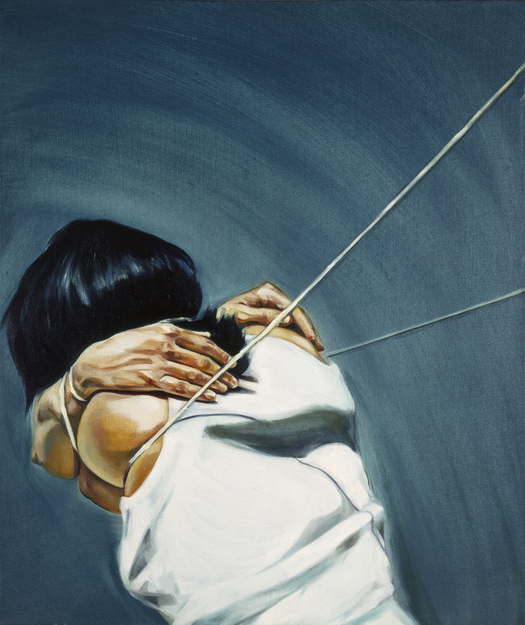 La confusión e inadaptación frente a los códigos sociales establecidos, el rechazo a la propia imagen, el aislamiento, la impotencia y el agotamiento ante la constante humillación, son solo algunos de los sentimientos compartidos. Las diferencias comienzan a observarse a partir de una serie de actos performativos donde determinados movimientos, ocasionados por cuerdas imaginarias, que tan pronto ciñen sus extremidades como le atan a la cabeza una pesada almohada, dislocan su cuerpo hasta hacerla caer rendida. Son metáforas que describen la presión de un exterior violento que produce una alteración cognitiva cuando parece imposible desafiarlo; y solo quitándose la almohada de la cabeza podrá salvar su vida.