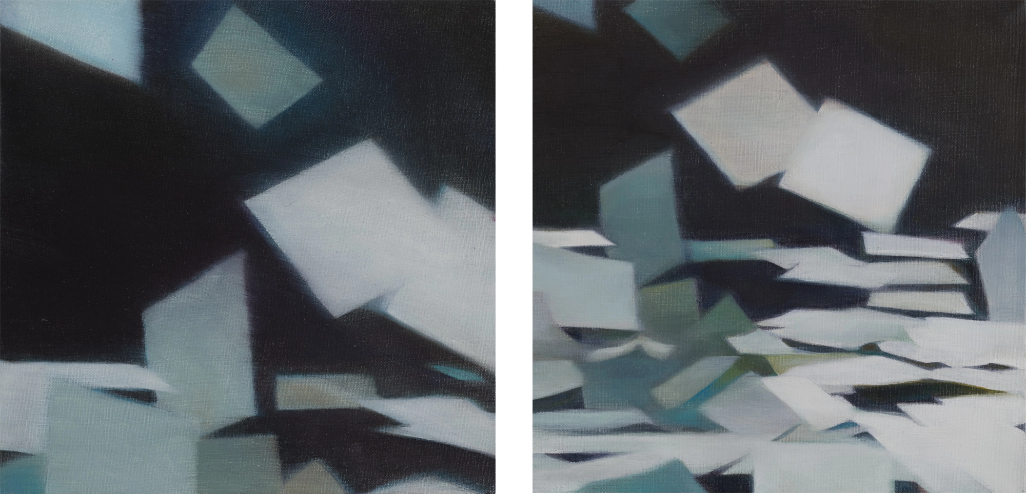 AIROSA MENTE de Salva TorresHe ahí una escalera firme, segura, con sus sólidos peldaños de madera, sin grietas. Y he ahí, también, esas hojas caídas sobre los escalones, o a punto de caer, empujadas por el aire de alguna ventana o puerta abierta que no vemos. Cada peldaño se comunica entre sí como nos comunicamos todos en la vida: con la certeza de lo inmediato. En cambio, esas hojas sueltas introducen el azar, la incertidumbre, lo aleatorio: en suma, lo extraña que resulta la vida. Y esa escalera, al igual que nuestra conciencia, se ve de pronto sacudida por la intromisión de esas cuartillas en blanco. Si hubiéramos cerrado la puerta o la ventana que propicia el aire del cuadro, nada de esto hubiera sucedido; que es lo que a menudo hacemos. Suerte que a Mery Sales se le olvidara. O no. Quién sabe.