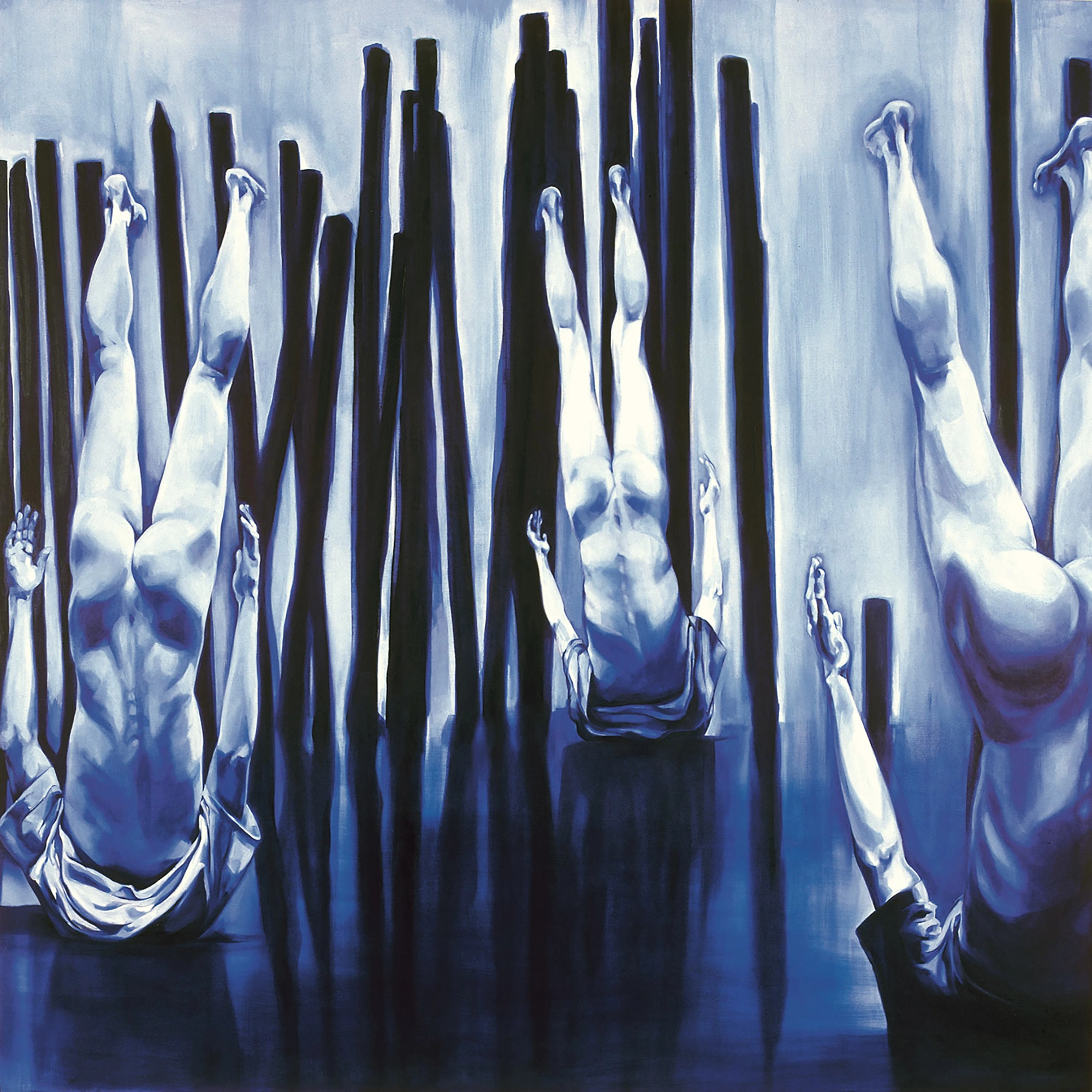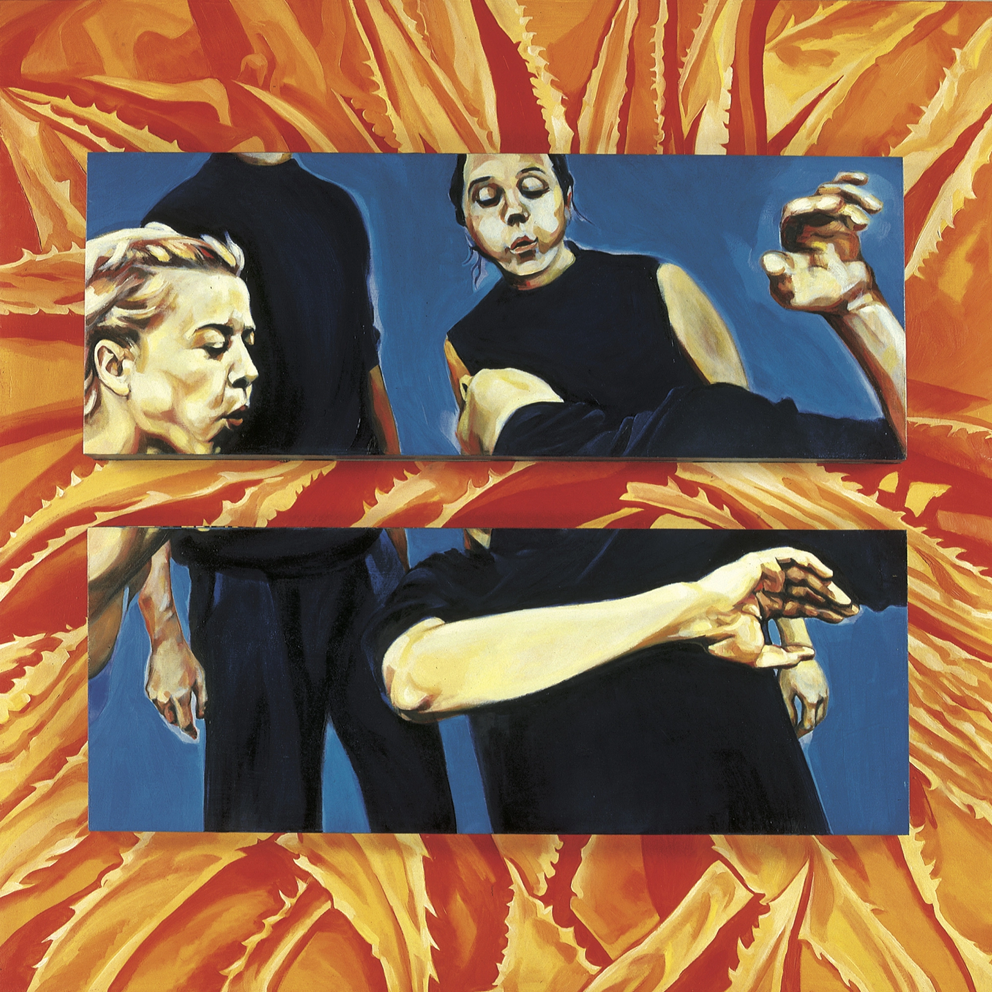 El cadmio es un mineral que aporta a determinados colores intensidad y saturación; los rojos, magentas, naranjas y amarillos que lo contienen se caracterizan por su condición extremadamente cálida y saturada. Estos son los colores empleados en la parte clara de las formas y, por contraste, dan pie a la sombra en los tonos fríos igualmente intensos: turquesas, esmeraldas, prusias o púrpuras… Sombras de Cadmio anuncia de este modo dos partes antitéticas: cadmio está nombrando a la pintura, implícitamente, en el material utilizado, y sombra propone el envés de lo claramente visible, es decir aquello que se esconde porque se desea, se intuye o se teme. La luz cegadora del cadmio necesariamente produce sombras, ambos extremos rivalizan en el mismo plano desmintiéndose y liberando en su lucha otros espacios para el pensamiento. Un enfrentamiento de sentidos que delata, al menos, que no existe una única fórmula ni mejor de ver ni una mejor que las demás. En todo caso, activa la necesidad de querer, a partir de la duda, y de mirar, mediante la pintura, aquellos trazos velados e indescifrables de lo otro desaparecido en la superficie del cuadro.