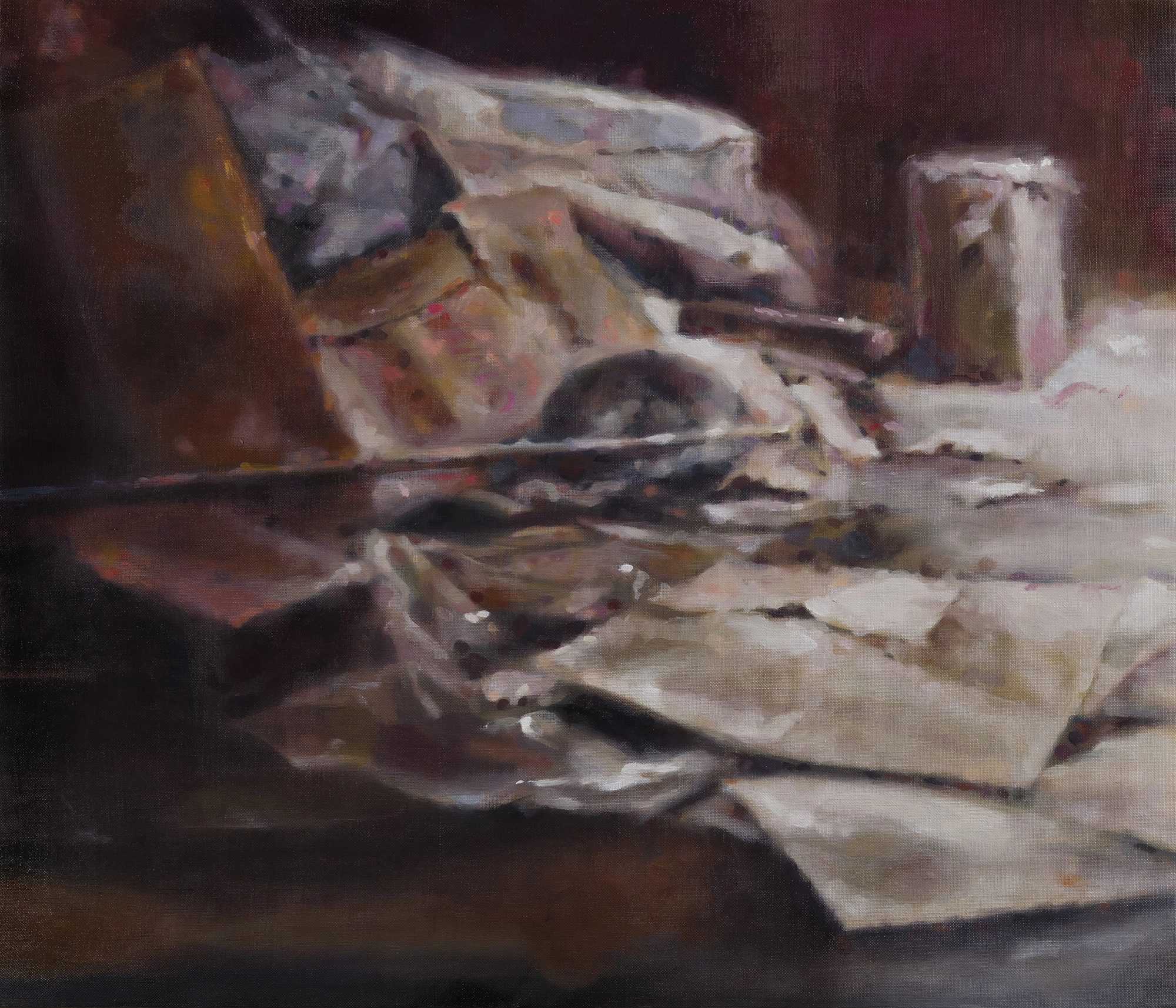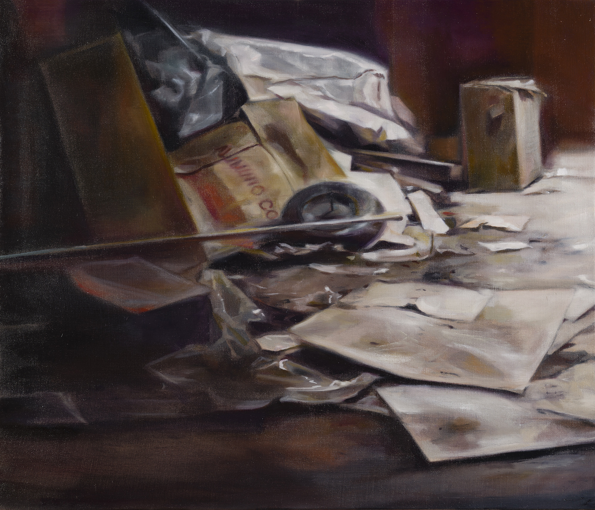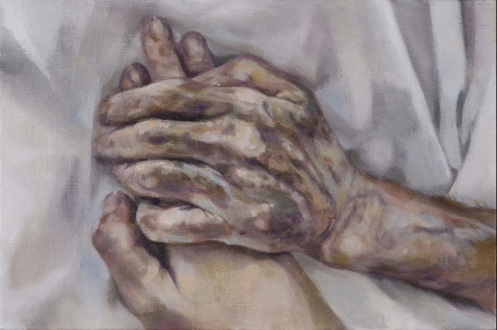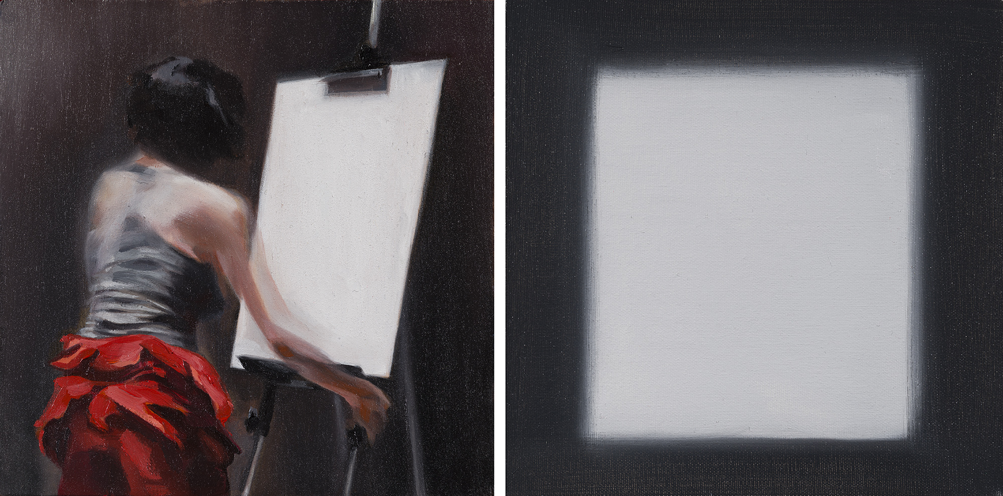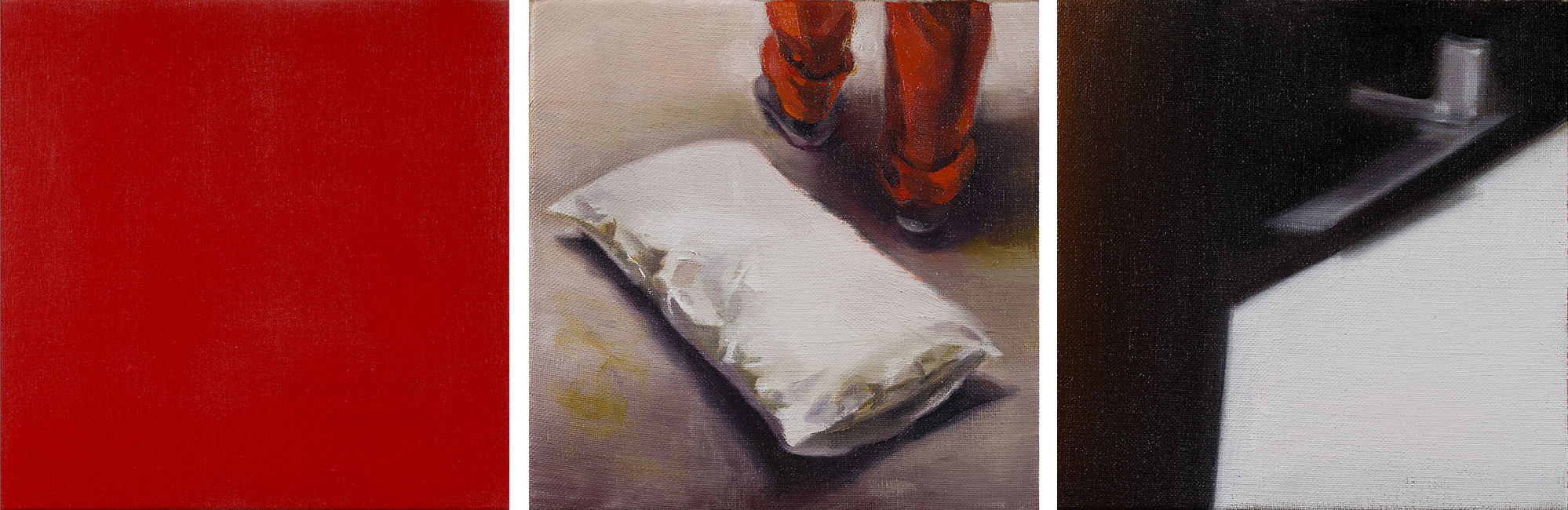 Ante la cuestión general, de quién soy o quiénes somos y qué pintamos en este mundo, surge la necesidad inevitable de aparecer retratada como pintora en los cuadros. Ser mujer en el campo de la creación, ser escritora, filósofa, actriz o, en mi caso, ser pintora, supone interpretar el mundo de otra manera al haber tenido menos referentes y más dificultades. Verse limítrofe genera preguntas, contenidos diferentes y plantea otra forma de contar. Pintar puede ser la expresión de un acto creativo y creador, una pulsión de existencia que hace posible inventarse una salida tras los escombros, a partir de las experiencias observadas o sufridas, sustraídas de la corriente del tiempo. Esta serie de autorretratos, dentro del proyecto Seres fuera de campo, retoma la figura de la Mujer elefante y utiliza la almohada, entre otras metáforas, como aquello que nos pesa y debemos soltar para vernos, reconocernos y avanzar: después del escombro está todo por hacer. La pintora representa a la propia pintura, la que mira y es mirada al mismo tiempo, y aparece ante un lienzo en blanco, en medio de la oscuridad, con un mono de trabajo de color rojo. Desde la piel de la pintura, la pintora va evolucionando a lo largo de una serie de escenas hasta transfigurarse en la piel de sus verdaderas protagonistas, otra serie en marcha de parias conscientes que encarnan la misma pregunta.